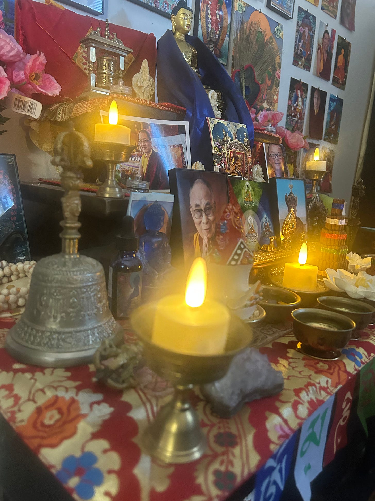 NOTE: One of the photos displays a battery operated tea light which serves as an allowable safer alternative to the traditional butter lamps.